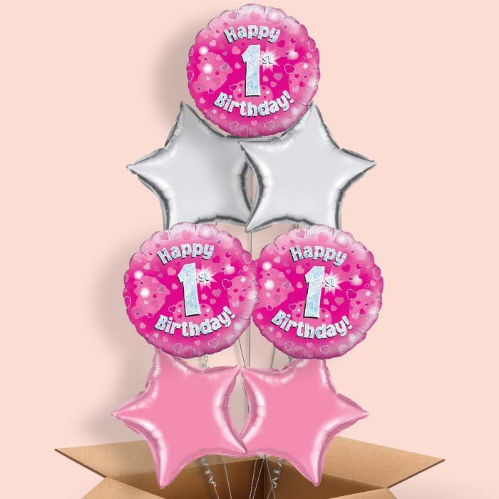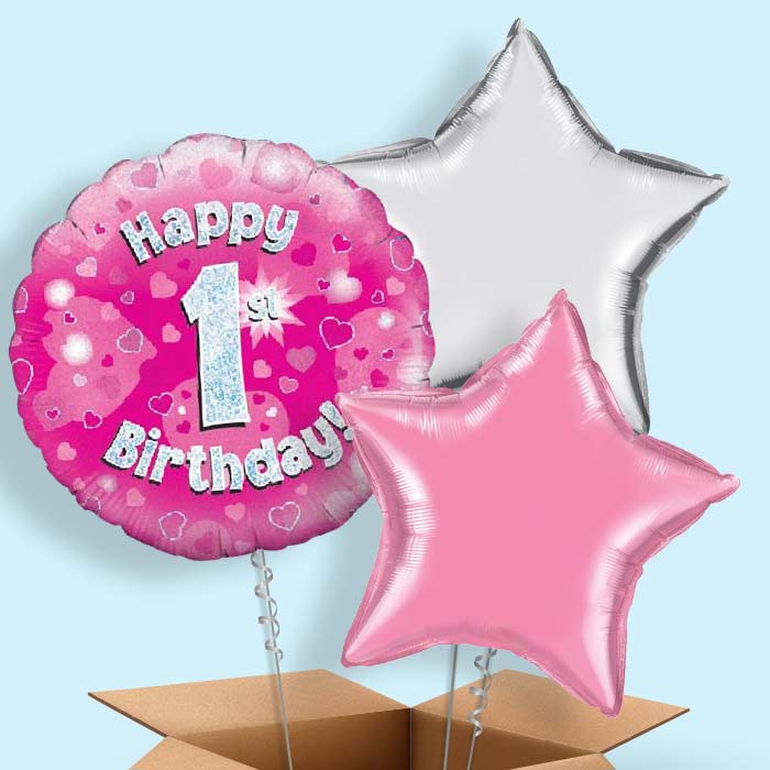 Pink Heart 1st Birthday Helium Balloons Delivered