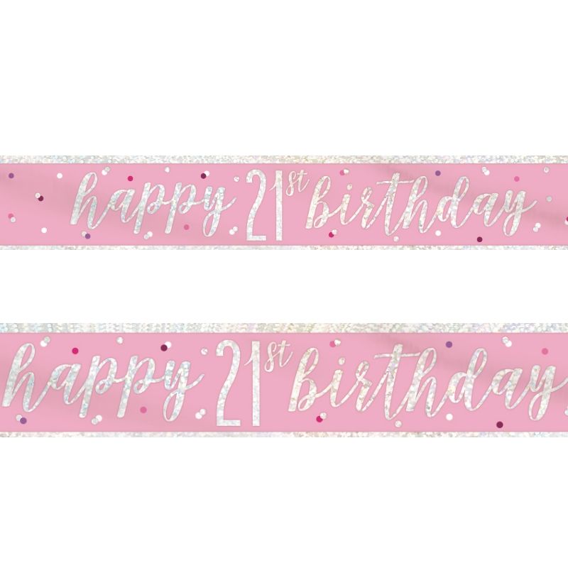 Pink & Silver 21st Birthday Foil Banner 2.7 Metres