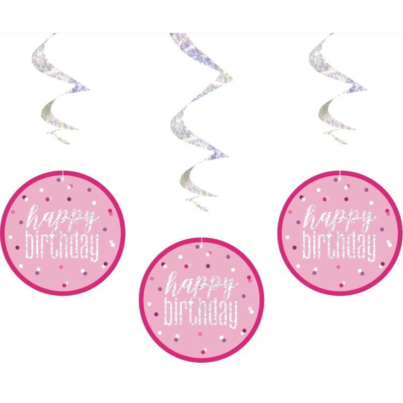 Pink & Silver Happy Birthday Hanging Decorations Pack of 6