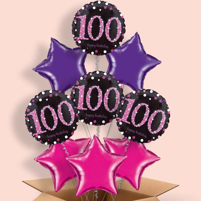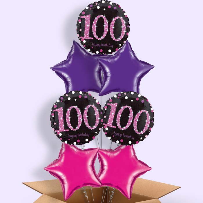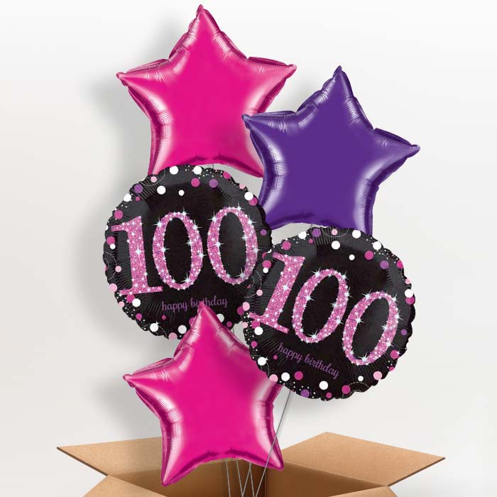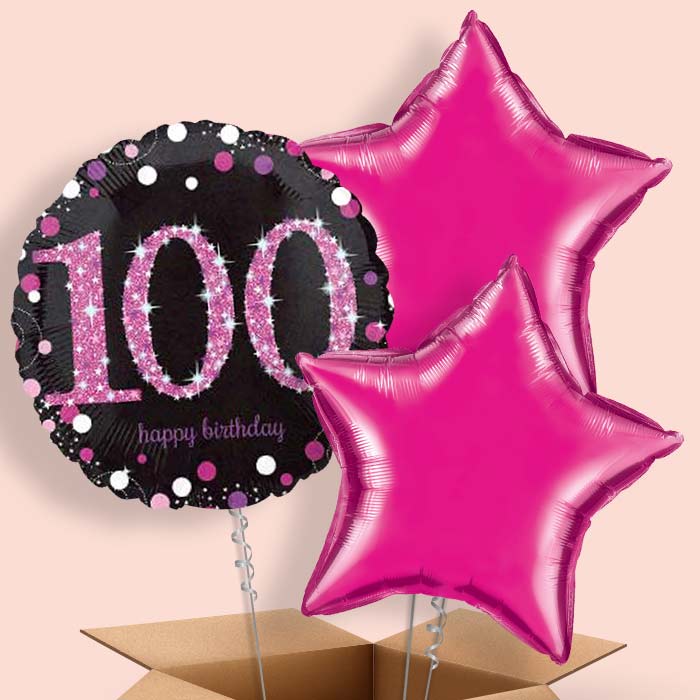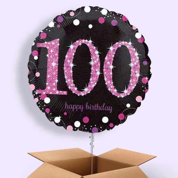 Pink Sparkle 100th Birthday Helium Balloon in a Box