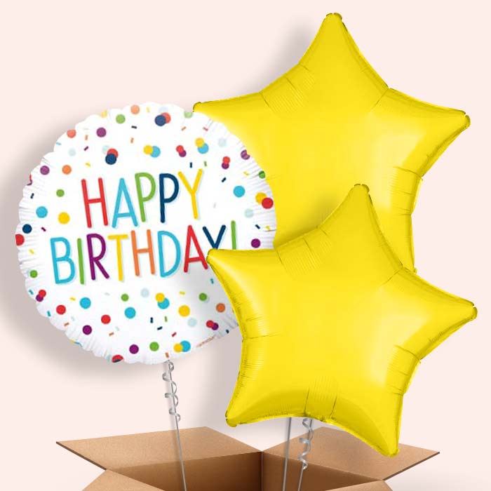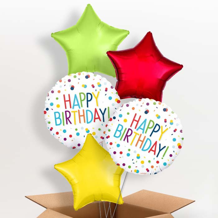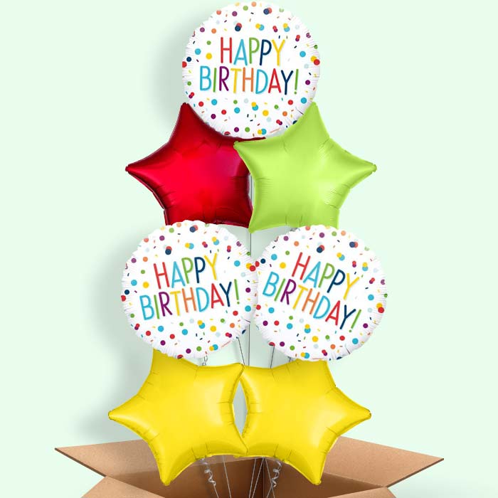 Send a colourful birthday wish with Rainbow Colourful Confetti Happy Birthday Balloons, they make a great gift, table centrepiece and party decoration.