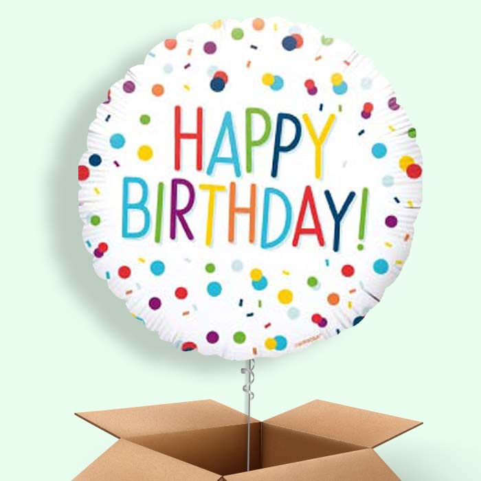 Rainbow Confetti Happy Birthday Helium Balloon in a Box