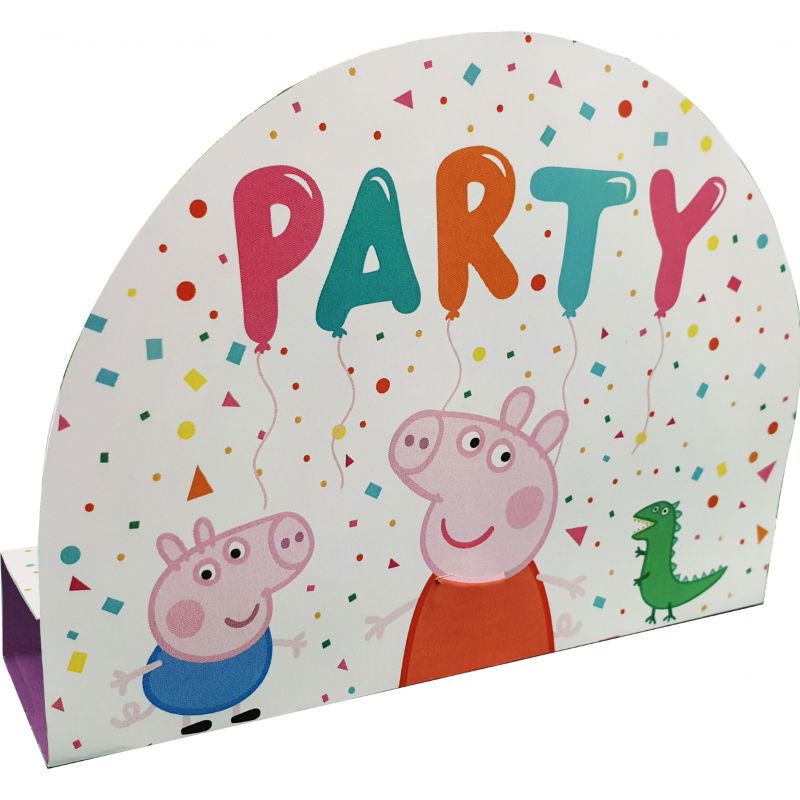 Our rainbow peppa pig invitations are a fun way to get your celebration started and give your guests all the information they need. The fun design features Peppa and George on a colourful background with the text "Party".