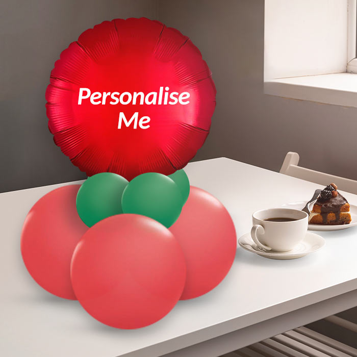 Personalisation is available on plain coloured balloons in options containing 3 BALLOONS OR MORE. Please note, only one balloon will be personalised in the balloon cluster.