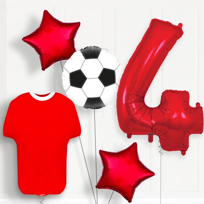 Our Red Football Shirt 4th Birthday Balloon Package will ensure you have all the balloons you need for a special 4th Birthday surprise!