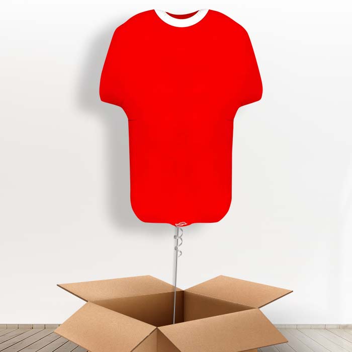 A cool Red Football Shirt Helium Balloon in a Box featuring red coloured football shirt design.