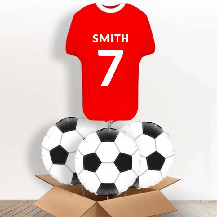 Our Red Football Shirt Helium Balloon in a Box is a great surprise gift! They also make a great table decoration too!
