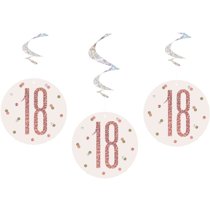 Rose Gold 18th Hanging Swirl Decorations Pack of 6