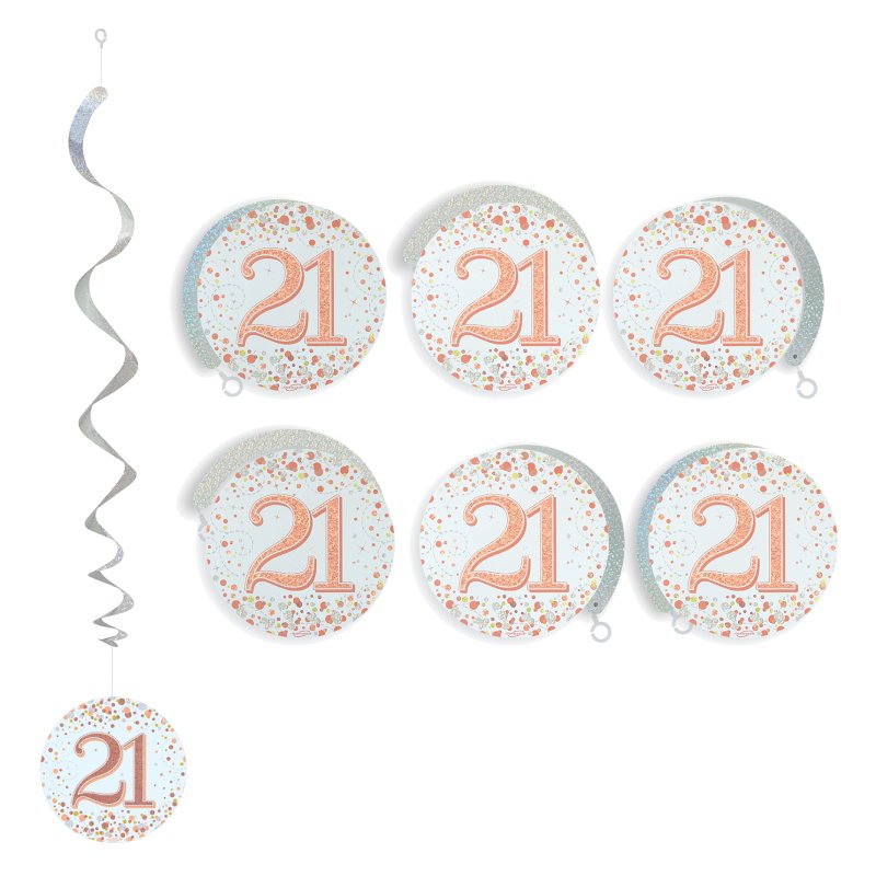 Rose Gold 21st Hanging Decorations Pack of 6