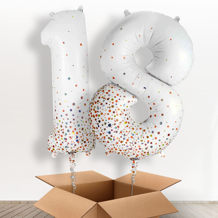 Our Rose Gold and White 18 Balloons in a Box is a great birthday surprise!