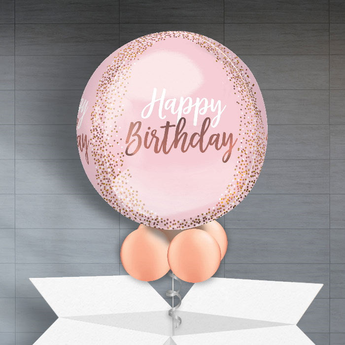 Personalisable Inflated Rose Gold Happy Birthday Orbz Balloon in a Box Gift.