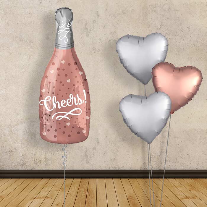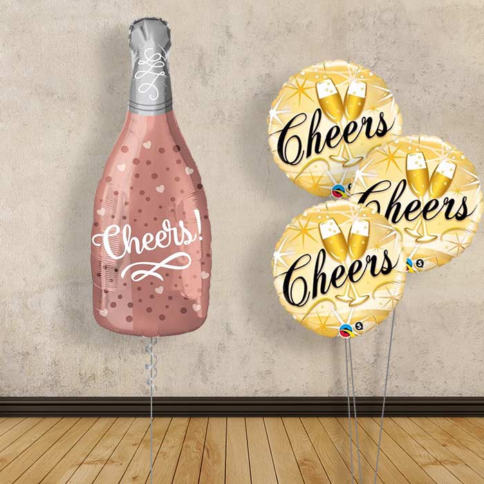 Send a thoughtful and personal balloon gift with a Cheers Rose Champagne Bottle Balloon, they make a great gift, table centrepiece and party decoration.