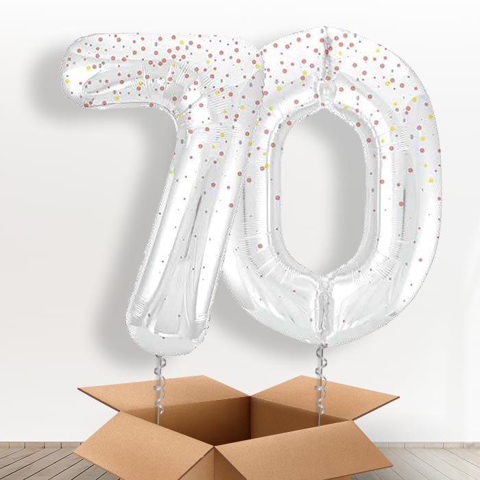 A great Rose Gold Dots 70 Balloons in a Box birthday surprise.
