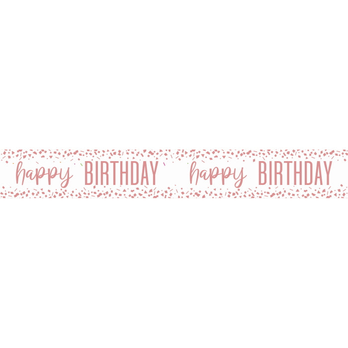 The elegant design features the text "Happy Birthday" with a white backdrop with rose gold confetti style print.
