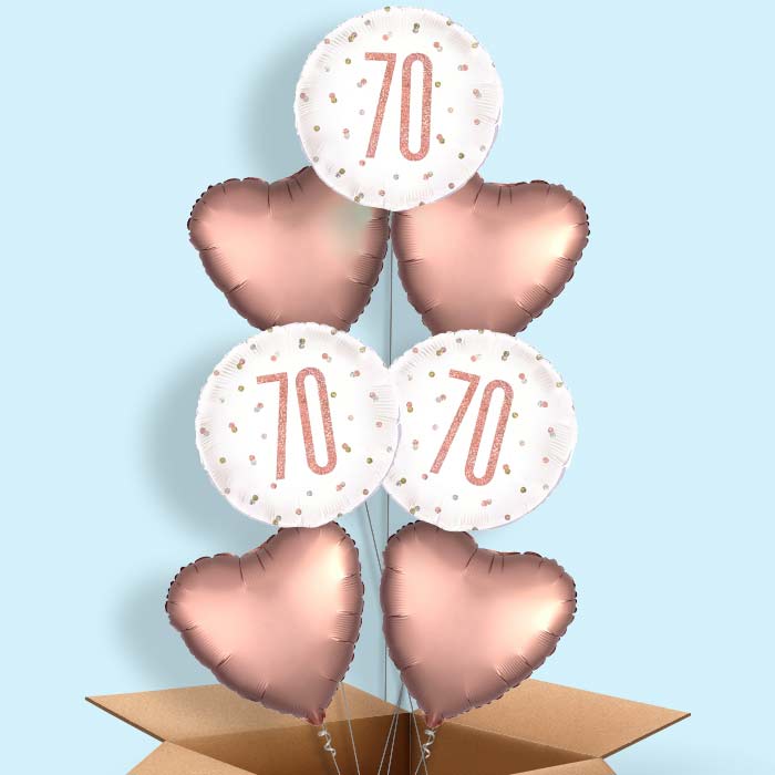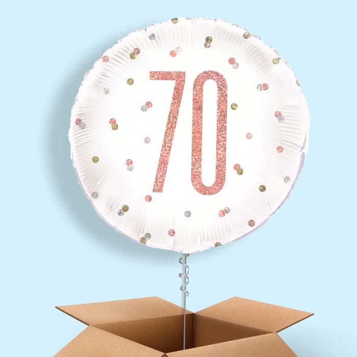 Rose Gold Holographic 70th Birthday Foil Helium Balloon in a Box Gift.
