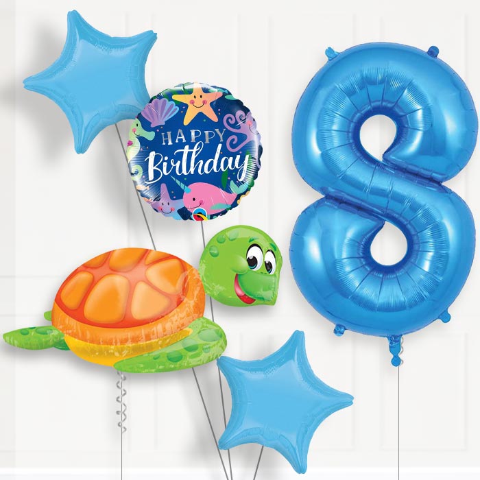 Our Sea Turtle Helium Balloon Package 8th Birthday will ensure you have all the balloons you need for a special 8th Birthday surprise!
