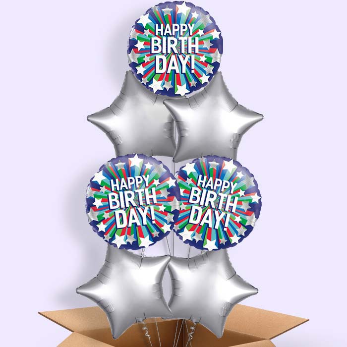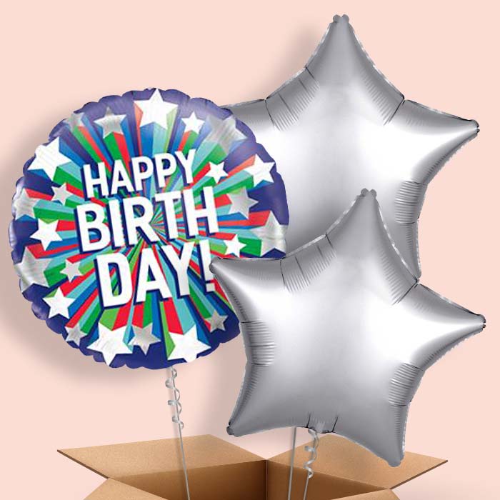 Shooting Stars Happy Birthday Foil Helium Balloon in a Box Gift.