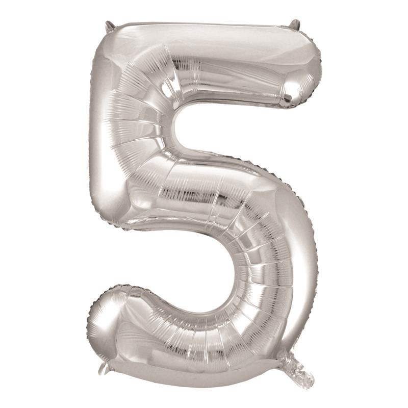 Silver Number 5 Foil Balloon - 34 inch Unique