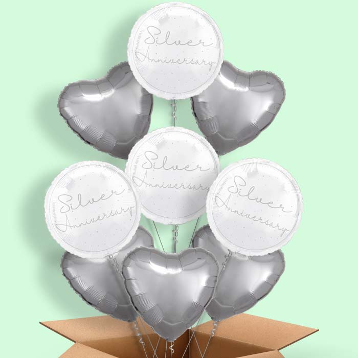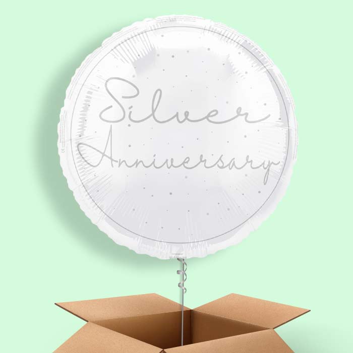 Silver Anniversary Foil Balloon in a Box featuring a Silver Anniversary design.