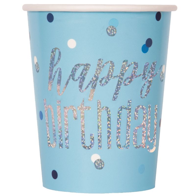 Silver & Blue Birthday Cups Happy Birthday Pack of 8