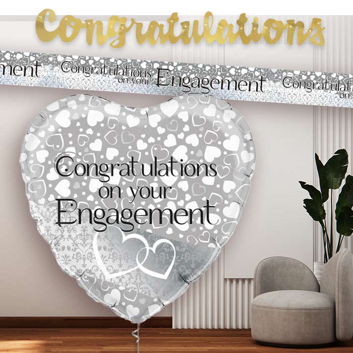 Celebrate an Engagement in style with Silver Engagement Party Banners and Balloon.