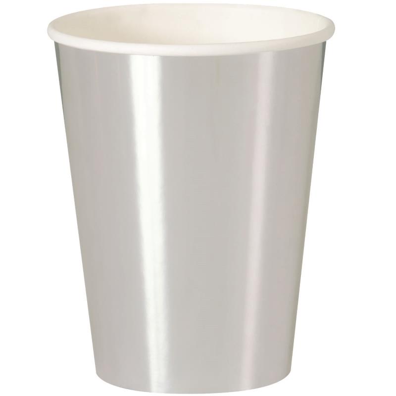 Silver Foil Paper Cups for your Party Table. Design features Silver print.