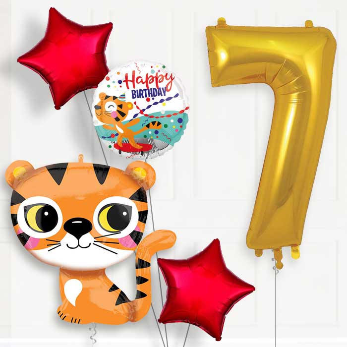 Our Tiger Helium Balloon Package 7th Birthday will ensure you have all the balloons you need for a special 7th Birthday surprise!