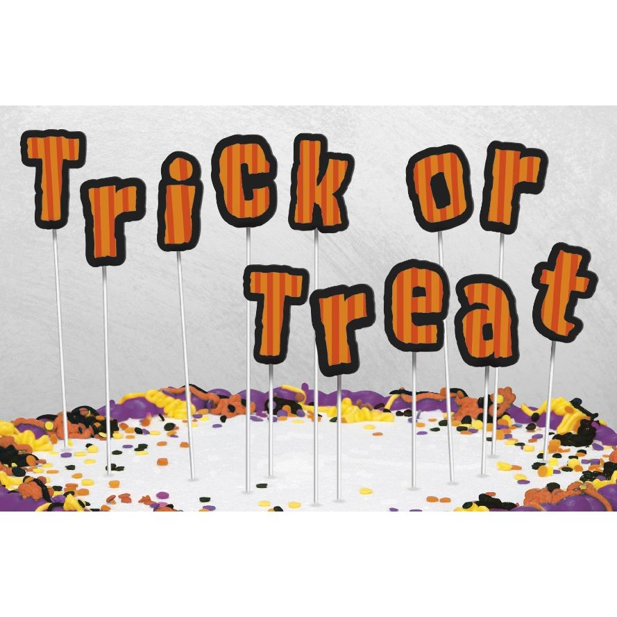 Trick or Treat Cake Picks Toppers Halloween Decoration for your Party Table for your Party Table. Design featuresTrick or Treat print.