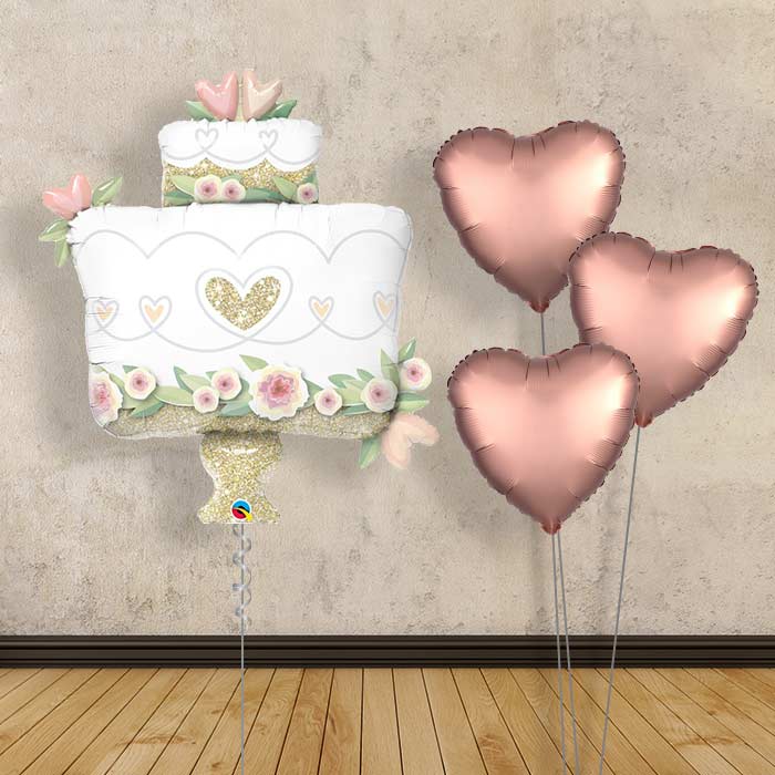 Send a thoughtful and personal balloon gift with a Glitter Gold Wedding Cake Balloon, they make a great gift, table centrepiece and party decoration.