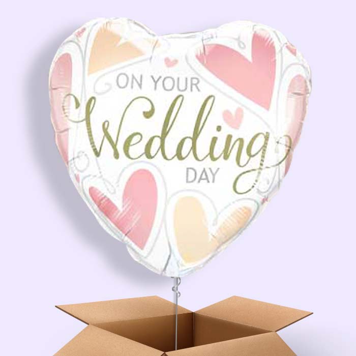 On Your Wedding Day Hearts Foil Helium Balloon in a Box Gift.